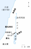 耶稣在约旦河受了约翰的洗礼,又在旷野受撒但的试探(参可1章地图)以后回到加利利,去拿撒勒,迦拿,迦百农,再回到耶路撒冷过逾越节。