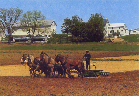 年复一年,来自都市有成千上万的游客,旺季自复活节到感恩节为止,看的是那马拉农具操作的情景,古朴的服装和马车,田间自由自在觅食的家禽,溪边饮水的牛群,风车,农舍前面或苹果树下嬉戏的儿童,有顶蓬的木桥,尝试一次中古时代欧洲中部的烹调法和糕点…还有富生意经并非朴实人所营的示范农场更值得一看,那些训练有素的讲述人给观光人上一次历史,宗教和农业综合的一课,足使您感到票价回值,面堆笑容而去。