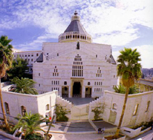 城中有一座巍峨的“报喜堂”(Church of Annonciation),地下室中有马利亚井,相传马利亚是在这里得到天使的报信。楼上教堂为圆顶,内部迄今仍未建筑竣,壁下挂满了巨幅的耶稣降生壁画,由世界各国教会捐赠,有古典的也有现代的,目不暇给,美不胜收,各有其不同的风格,也代表不同的神学思想;但可惜没有中国教会的作品,令人遗憾。