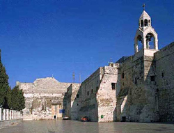 到伯利恒来朝圣的主要目的当然是朝拜瞻仰“主诞堂”(Basillica of Nativity),即救主耶稣诞生的地方,这座教堂我曾来朝拜过两次,一次在五年前的一个黄昏,我一个人由耶路撒冷搭巴士赶到伯利恒,到达时教堂里那两排古老的吊灯已经燃亮了,教堂大门即将关闭,我匆匆跑到地下的石穴中,在马槽旁跪下来祈祷,想到这就是耶稣哇哇坠地的所在,这位万王之王道成肉身的地方,一时心灵与身体均感到惊颤。然后我爬到顶楼上,由住在楼顶上的一位女孩子引我到著名的伯利恒圣诞钟旁小立,由上面看下来,小城的灯火灿然,对面回教寺的高塔中正播出沙哑的晚祷经文,打破了小城的寂静。