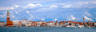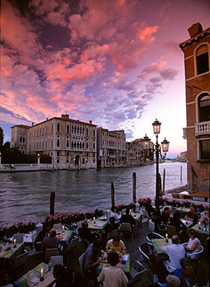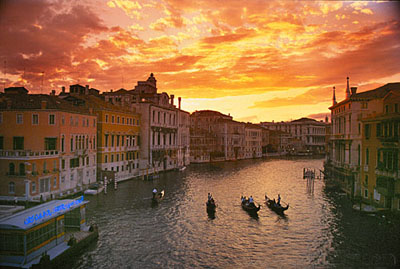赴市内旅馆,冲入眼帘的威尼斯市容将令人终生难忘:大运河口的圣马可水盆,溪流交汇,Salute 大教堂扼著咽喉,教堂背后的