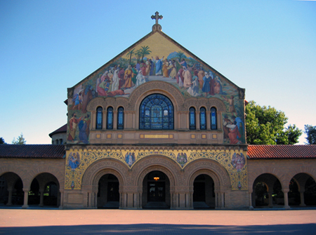 史丹福大学(Stanford University)于1885成立,建立在他们捐出的8,800英亩校址。初步建筑费用约七百万美元,以后继续增加。1891开学。二年后,史丹福逝世。展恩夫人继续顾问校务十二年,继续捐助,特别著意于那座小教堂的建造;虽然不大,却造得美轮美奂。