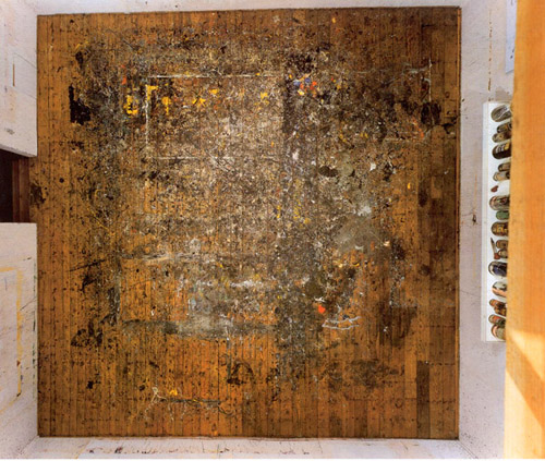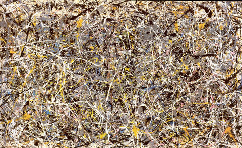 “爬在地板上作画,给我更多的安逸,平安,感觉上我更靠近,更令我投入画中,属于画的一部分。就是这样,我可以在画的四方走动,投进画里…”--波洛,1947