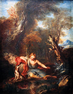 希腊神话中,有一个少年,生得十分俊美英秀。他的名字是纳西塞斯(Narcissus)。许多女子被他的俊美吸引,都想得到他的垂青;但他看别人不是不够清洁,就是不完全,有某种缺陷,所以只爱自己,不爱别人,也不想结合繁衍增益后代,只喜欢欣赏自己的容貌,成为恋己狂,把生命消耗在照镜子上。最后,他经过一道河,看见水中映出俊美的影子,恋恋不能自已,要去水中与那理想的青年相会,结果是一去不回。在那里,生出一棵花来,就把他的名字称那花,是水仙花。