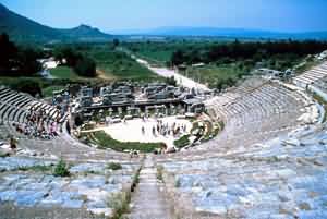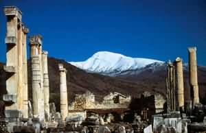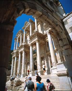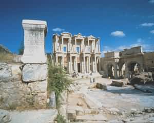 以弗所(Ephesus)希臘古城遺址位于士每拿市東南40公裡處,大約在西元前1000年由居住在安納托利亞高原西端愛琴海沿岸的愛奧尼亞人(Ionians)興建。愛奧尼亞人對希臘文化有過極大貢獻,其中荷馬史詩被視為千古名著。此外,愛奧尼亞人在哲學、地理、史學、建築、雕塑等方面也很傑出,以弗所古城的建設集上述成就之大成。考古發掘表明,愛奧尼亞人在首領安德洛克勒斯(Androkles)率領下,從希臘中部遷居安納托利亞西部沿海地區,征詢賢哲意見后,定都以弗所,開始了大規模的城市建設,廣泛采用柱式架構,配以大量雕塑和壁畫,愛奧尼亞式建築由此得名,並成為古希臘五種建築風格之一。