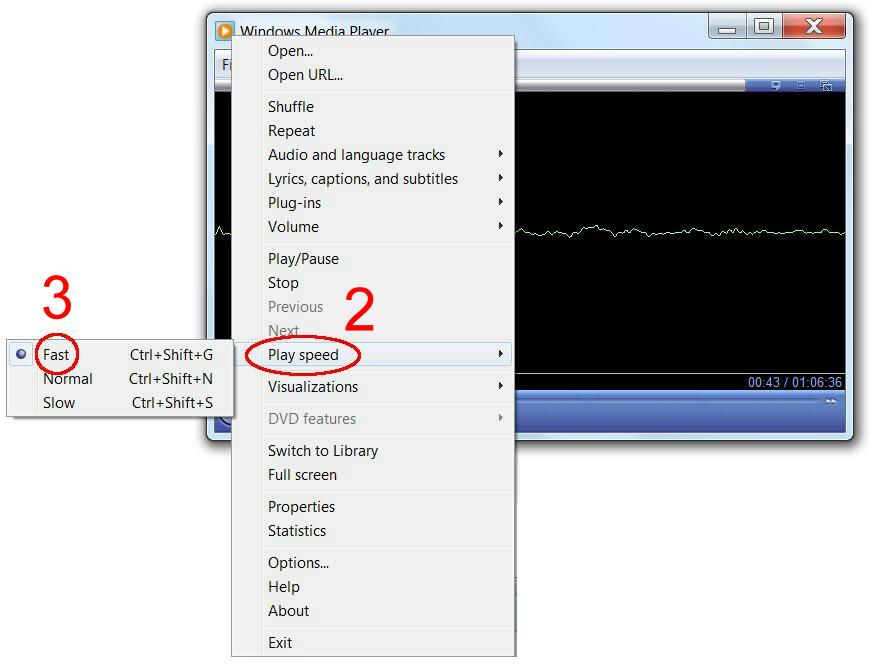 如果使用Internet Explorer,內定是以Windows Media Player播放音效檔。如此可依以下步驟改變播放速度: