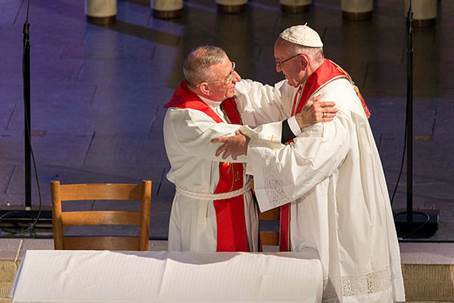 Francis and Bishop Munib Younan at the joint Lutheran-Catholic ecumenical