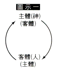 當人致力於屬靈操練時,主體與客體的角色上有了改變。讀經,禱告時,人成了客體,而聖經成了主體。人嘗試明白神的話,默想神的話,回應神的話和渴望生命經歷神時,人就成了主體,耶穌成了客體。這種主體與客體的交換,就構成了主體與客體之間交流的客觀性(參看圖示一)。因人不但經歷了“耶穌愛我”,也回應了“我愛耶穌”,在靈命操練上這是兩個主體,同時也是互為客體的屬靈交流。
