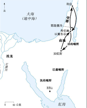 b. 以色列人離開了加低斯,在曠野飄流近40年之後,又再回到加低斯;他們像在曠野裡兜圈子;