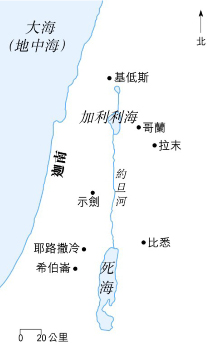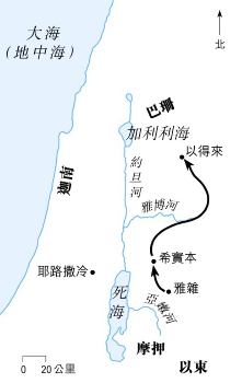 4. 東面邊界:從哈薩以難劃到示番為東界。這界要從示番下到亞延東邊的利比拉,又達到基尼烈湖的東邊。這界要下到約旦河,通到鹽海為止。