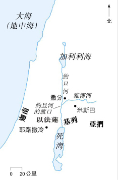 a. 約旦河東兩支派半已返回河東之地(書二十二章);其餘九個半支派就在約旦河西;